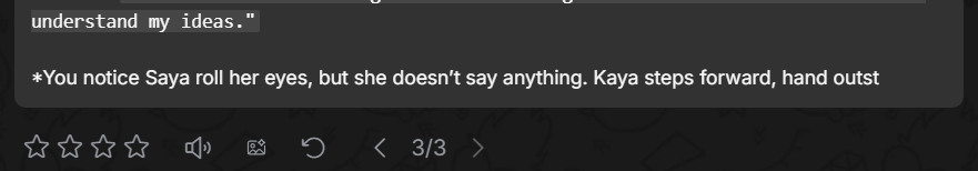 To steer the story in the desired direction, use the message editing feature and write the response you want the character to say. To do this, click the three dots in the top-right corner of the message and select .